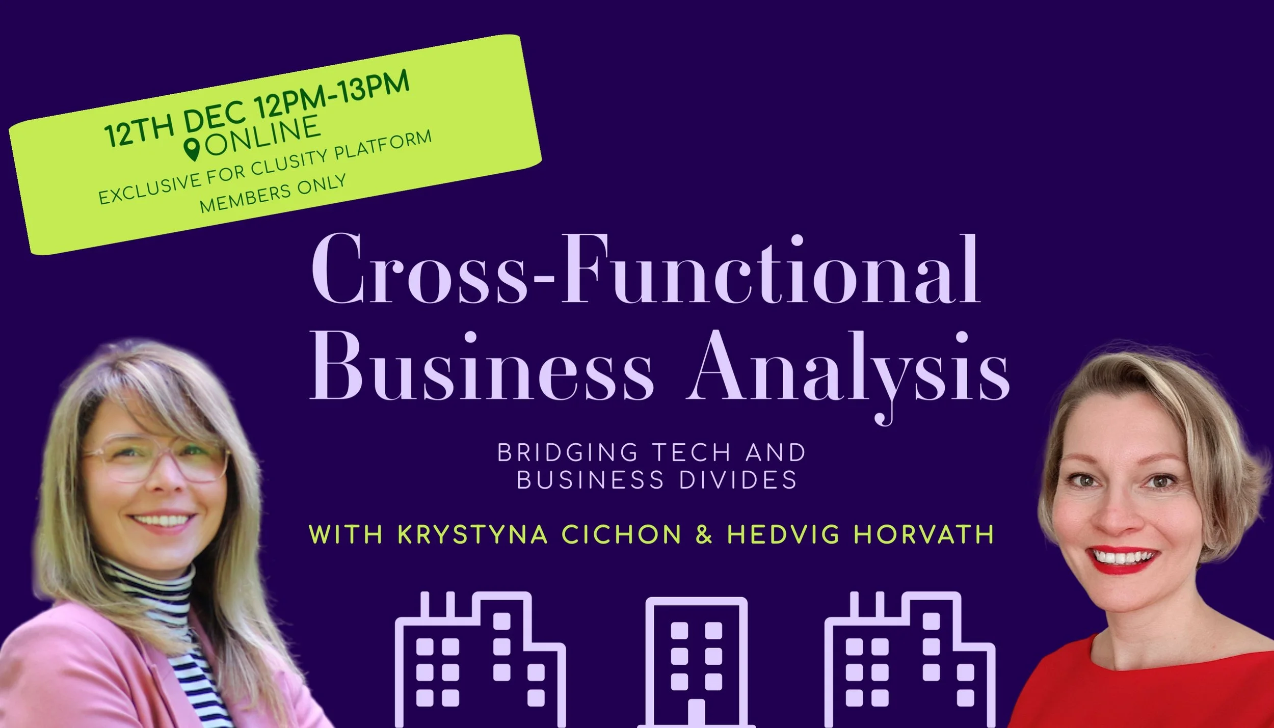 Sluit je aan bij Krystyna en Hedvig voor een boeiende online sessie tijdens de lunch, waarin we dieper ingaan op Cross Functional Business Analysis om de kloof tussen technologie en business te overbruggen.