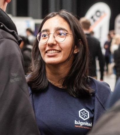 Muskaan Parikh: her first name - मुस्कान - means 'smile' in Hindi. That’s something she does a lot! Muskaan has a bachelor's degree in Applied Informatics with a focus on Full Stack Development, and is currently working as a Test Automation Engineer at b.ignited. She’s a hardworking person who loves finding creative solutions to challenges. Outside of work, she has a passion for playing the piano, and is a very social person who enjoys connecting with others and surrounding herself with great company.